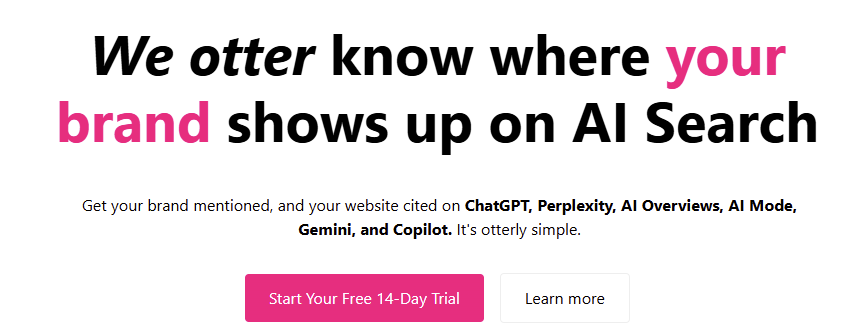 - Otterly: Simple setup with multi-engine monitoring for fast visibility snapshots.