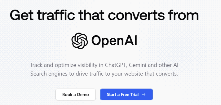 - Purpose-built for AI search visibility: A dedicated, front-end facing platform that shows precisely how ChatGPT and other AI models present your brand. Not just reftrofitted from traditional SEO.