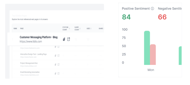 - Citation-driven insight: Reveals the sources that influence AI brand mentions. This helps you connect AI responses to authority and content strategy.
