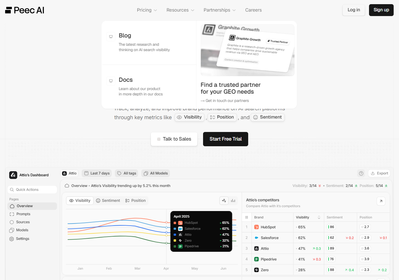 Compared with Peec AI, it leans into a more lightweight and accessible setup, which can make it a better fit for smaller teams that still want strong visibility data without a heavier enterprise feel.