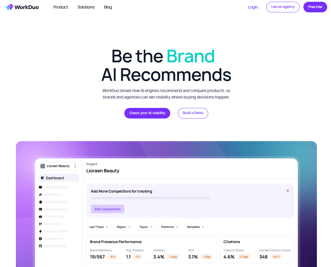 WorkDuo gives teams a practical way to track AI visibility, compare competitors, and act on changes in brand, product, and citation presence with more confidence.