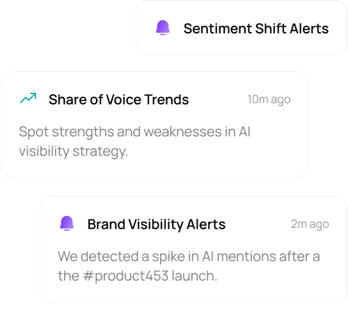 - Prompt tracking: Monitors how your brand appears across key AI platforms.