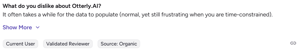 Chris P., President, noted on G2 that the platform can be frustrating when data takes time to populate, especially under tight deadlines.