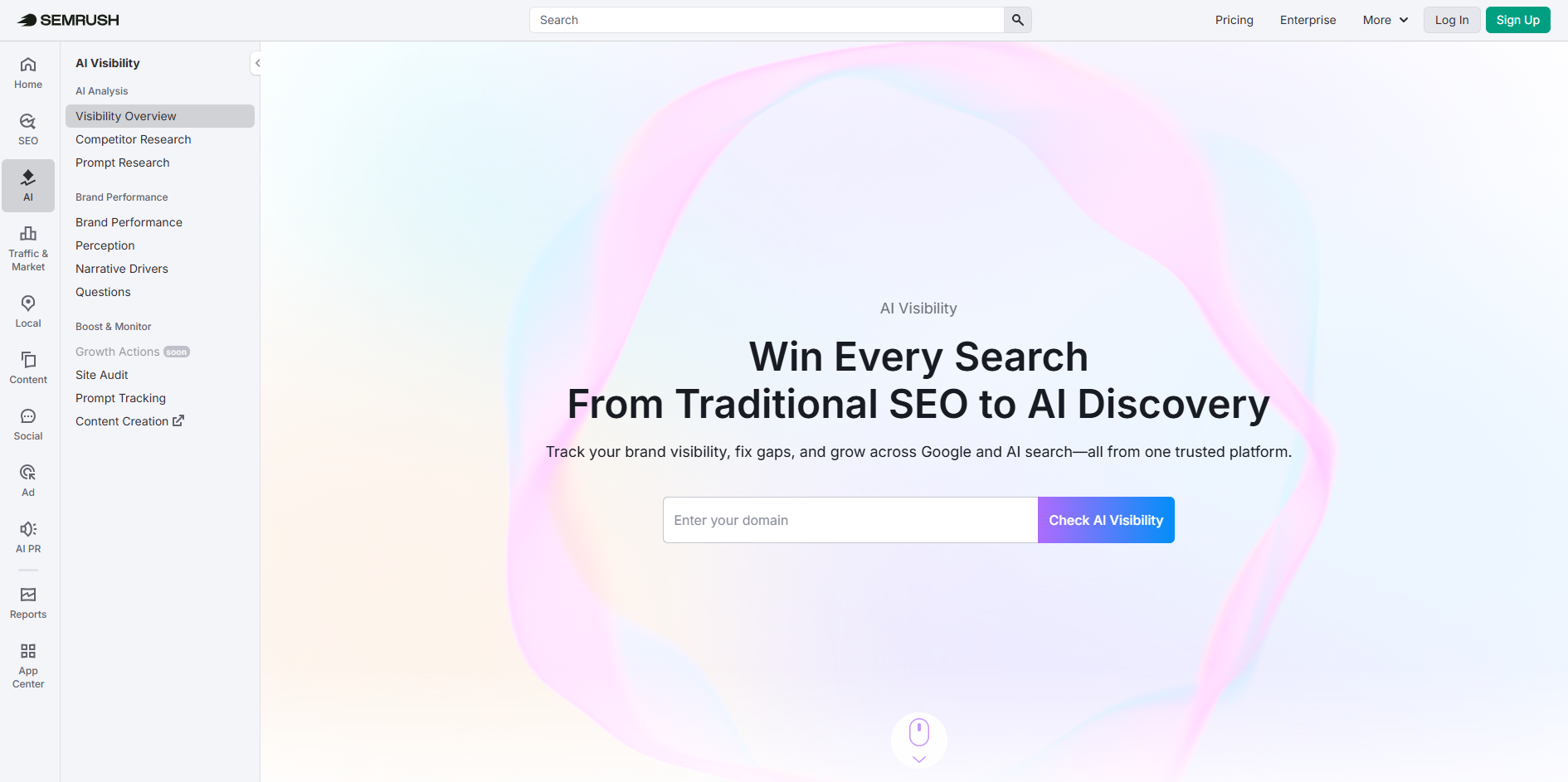 10. Semrush: Best for Finding AI Visibility Gaps and Connecting Them To Broader Search