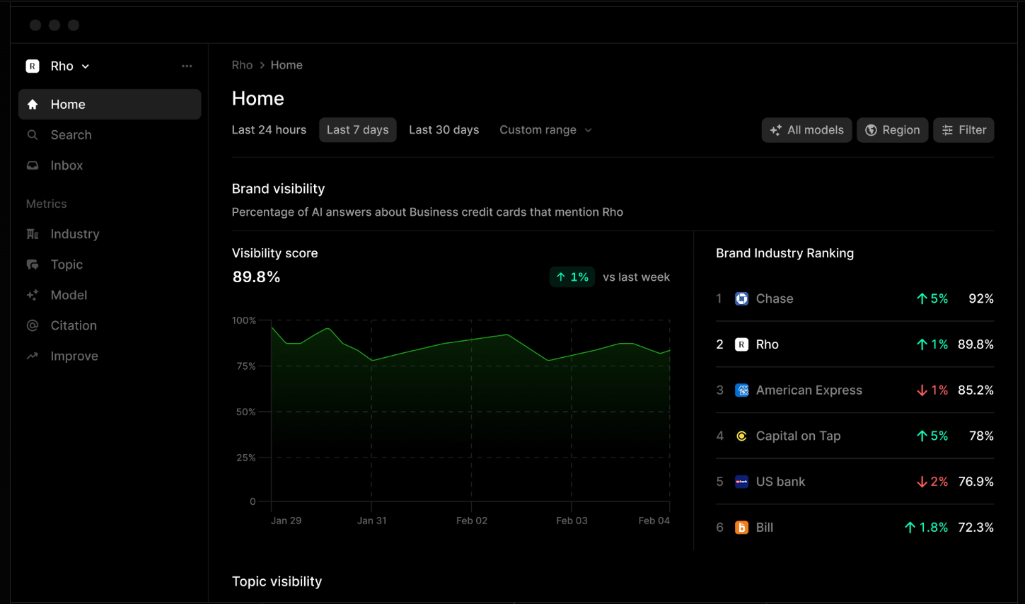 It also layers sentiment themes to show how AI frames a brand in its responses. The result is clearer reporting that supports faster decision-making.