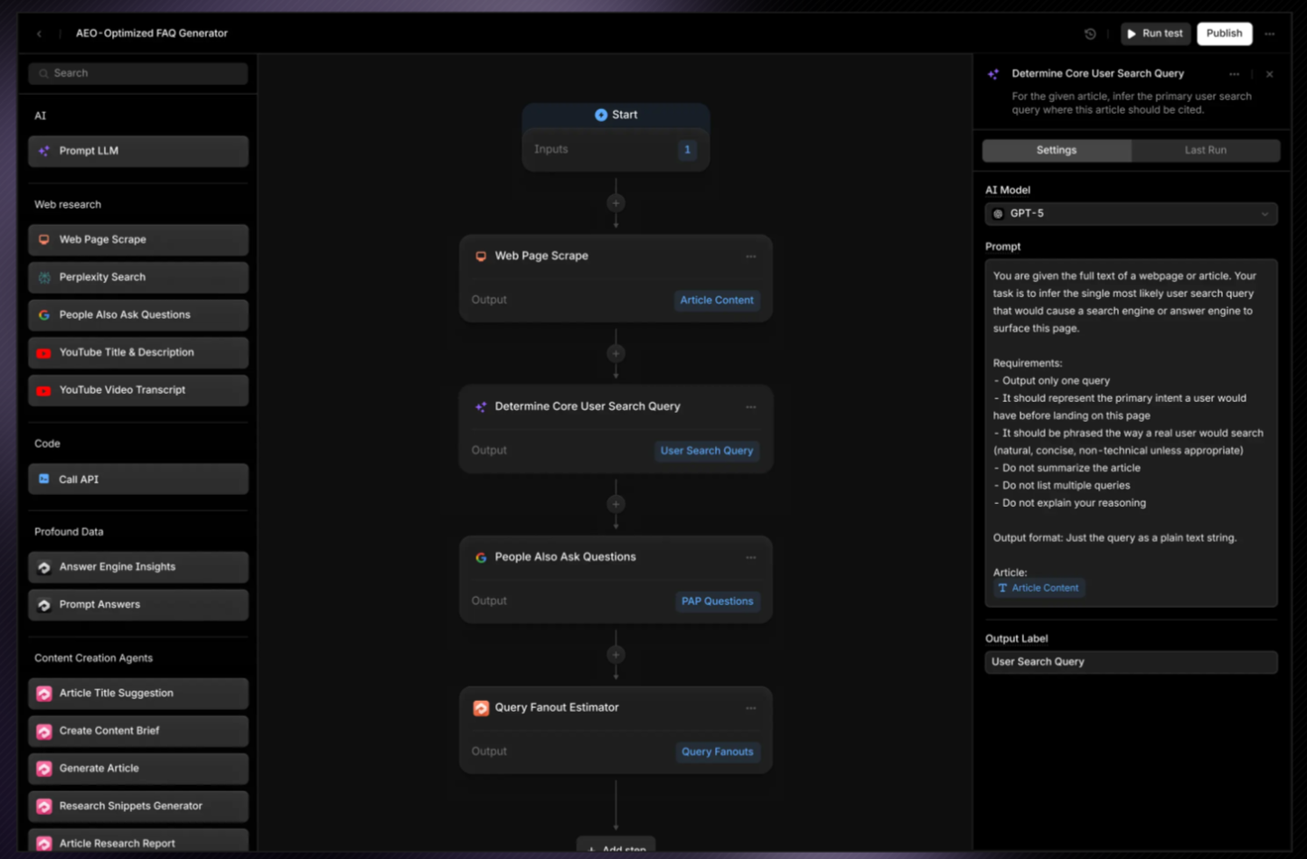 • Automated workflows to generate net-new AI-optimized content and update existing pages