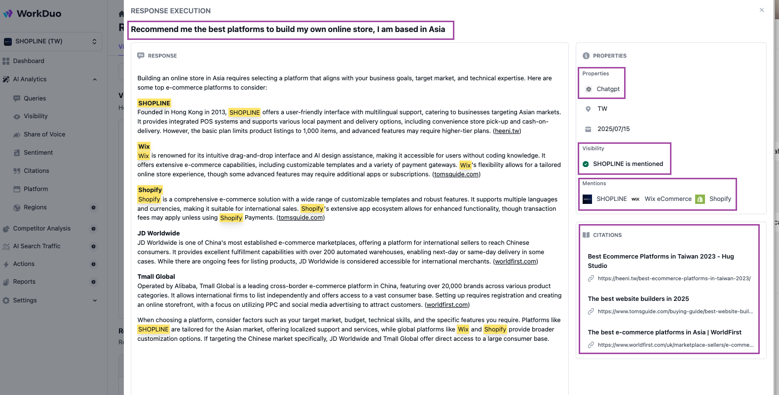 To make this repeatable, use an AI visibility command center like WorkDuo to track exactly how AI platforms represent your brand and what drives those answers. It uses real-time browsing data, not just API outputs, so the results are more accurate and closer to what users actually see. Start your free trial with WorkDuo.