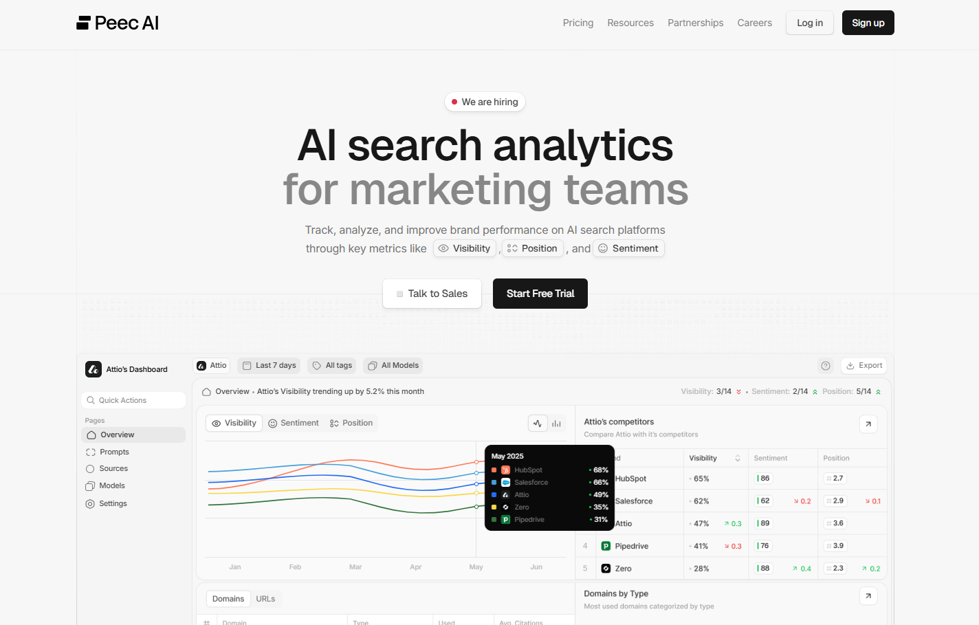 3. Peec AI: Best for Straightforward AI Visibility Analytics